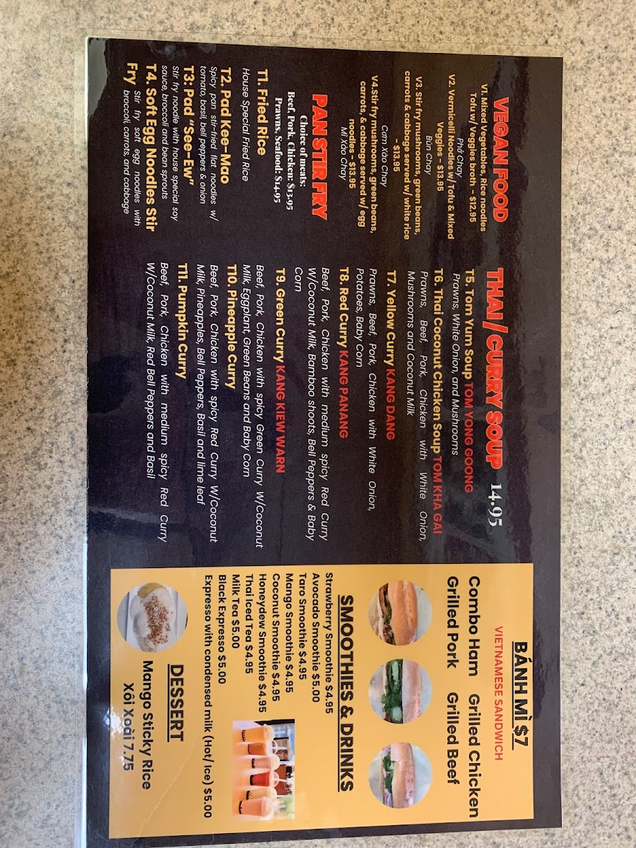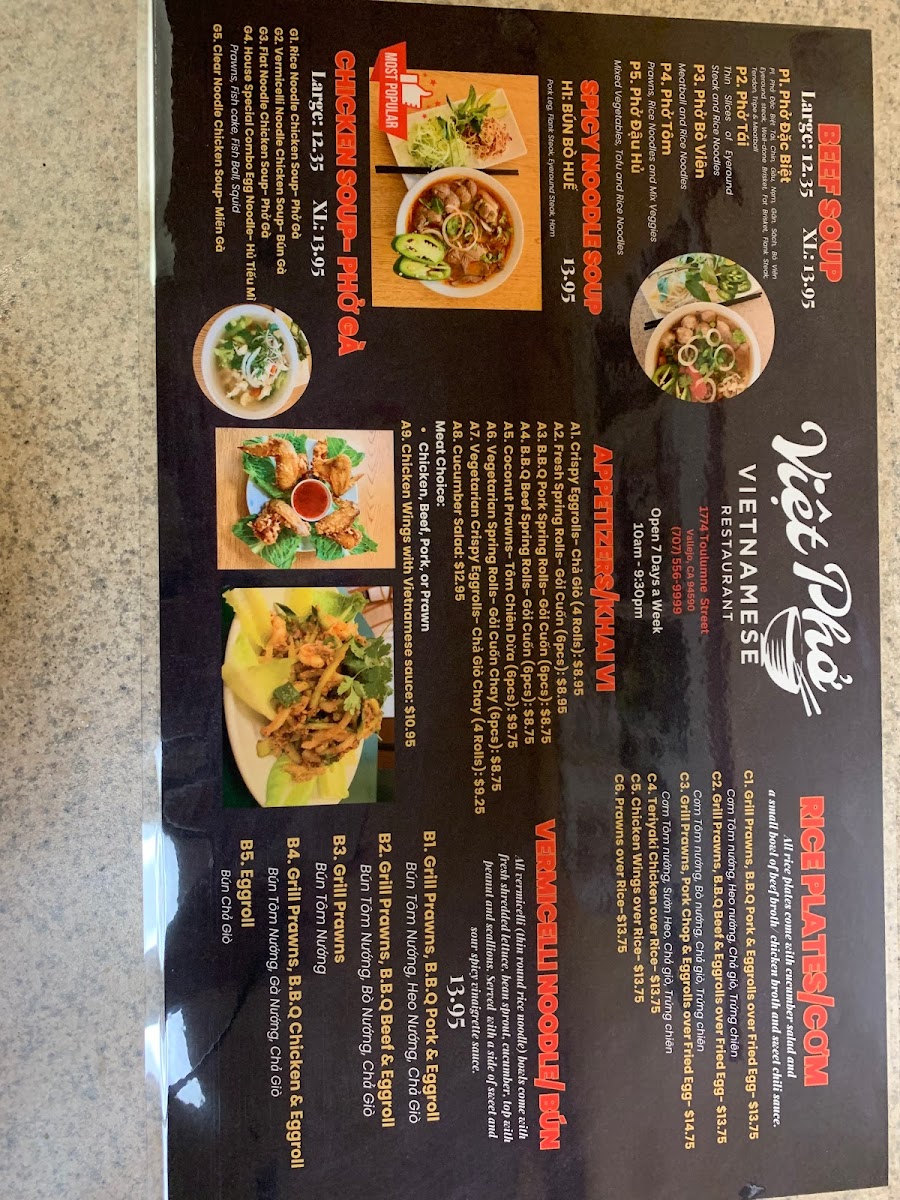 Special Pho with options: eye round steak, well-done brisket, fat brisket, flank steak, tendon, tripe, meatball. Sizes: large, extra large.